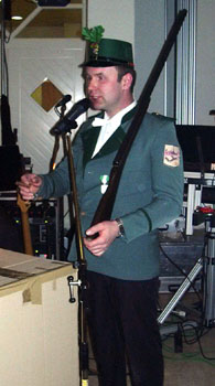 Im weiteren Verlauf des Abends konnte als weiterer Höhepunkt die Schießsportabteilung um Schießmeister Martin Pohlmeyer von Dr. Manfred Pöppel, selbst jahrelang sehr erfolgreicher Schießsportler, als Spende ein neues Links-Gewehr für den Schießsportnachwuchs in Empfang nehmen